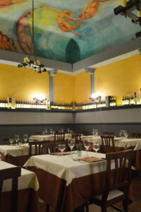Questo è lo spazio più intimo del ristorante, speciale per coppie o gruppetti, dove gustare dei piatti del menù à la carte in un ambiente suggestivo con scene del Giudizio Universale. - Le due sale degli artisti: 76 sedute (sala 1), 68 sedute (sala 2)